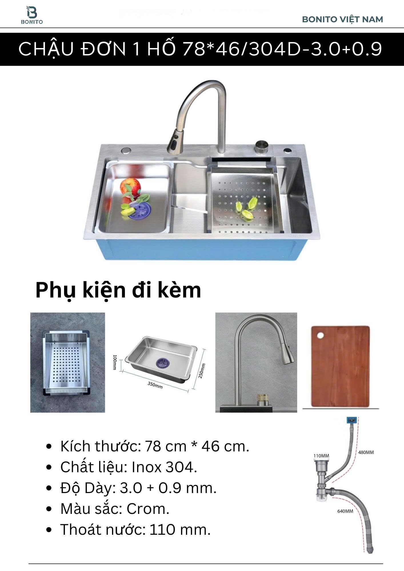 • Thoát nước: 110 mm